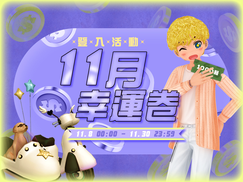 [活動公告] 【登入活動】11月幸運卷( o=^•ェ•)o ┏━┓
