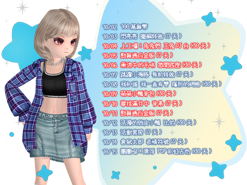 今年雙十跟中秋離的好近阿~大家有計畫去哪裡玩嗎?沒有的話就來玩勁舞團吧!