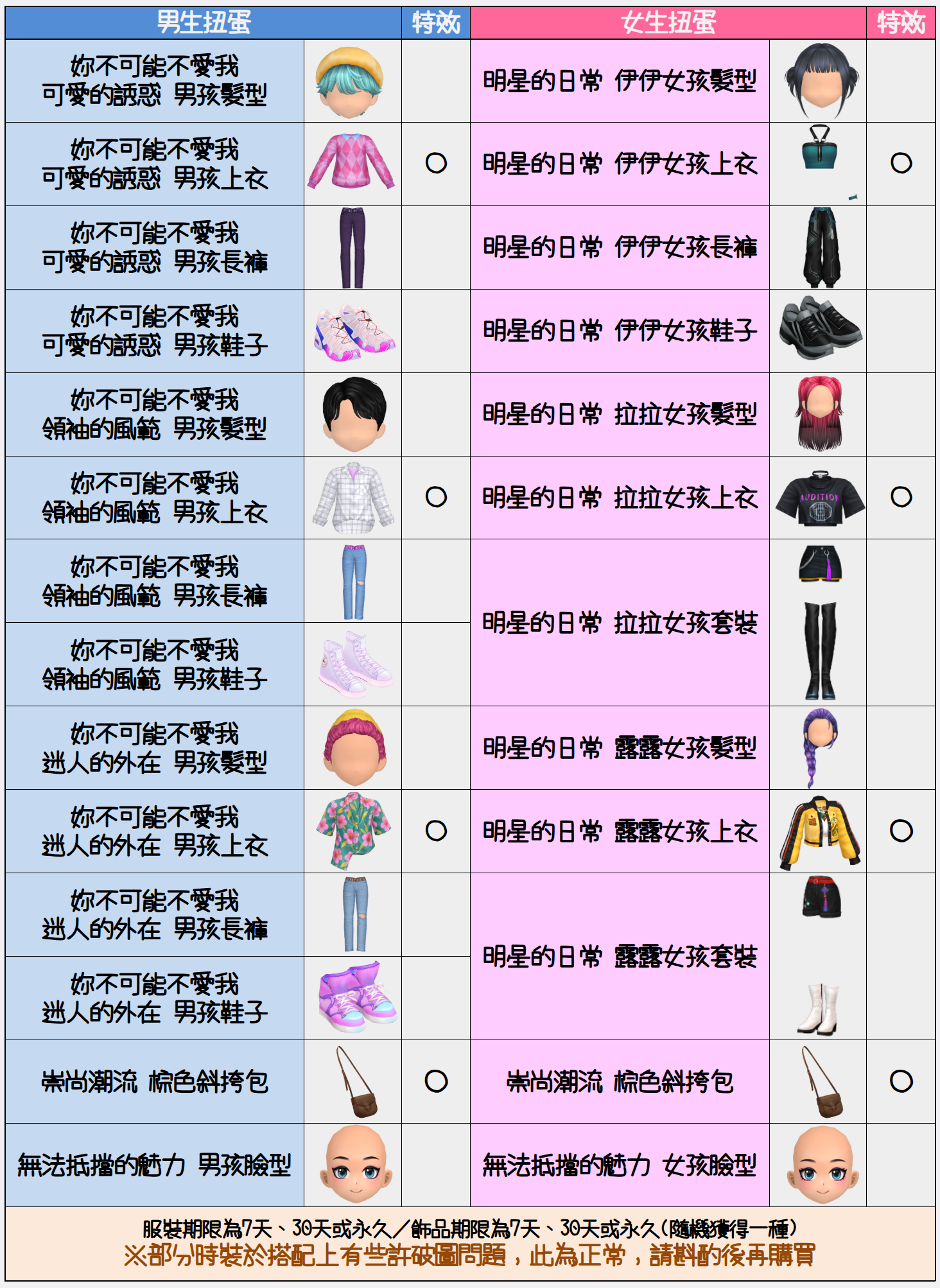 一般扭蛋道具實際穿搭圖(部分道具為穿搭示範-非本次一般扭蛋內容)