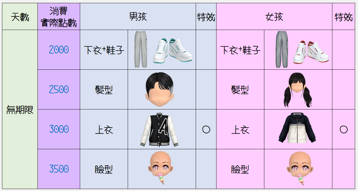 活動期間內累積消費達指定點數,即可獲得對應性別的 走啊! 一起去練舞室 情侶款 服裝部位道具。