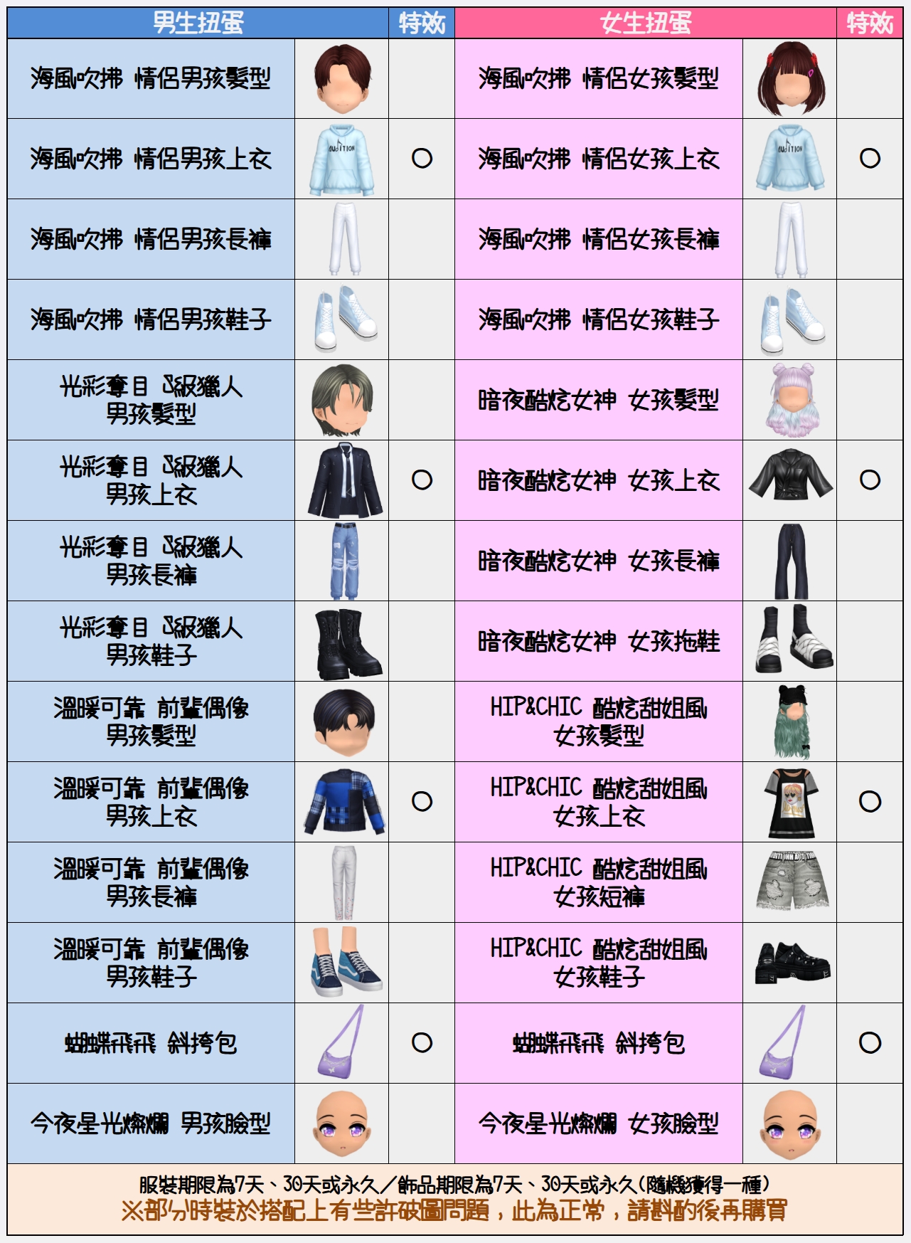 一般扭蛋道具實際穿搭圖(部分道具為穿搭示範-非本次一般扭蛋內容)