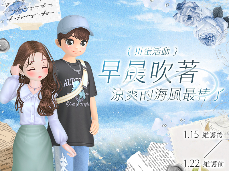 ※本活動與活動二為同一天結算,任選一般扭蛋道具若選擇海風吹拂 情侶系列系列,將無法計算收集禮。