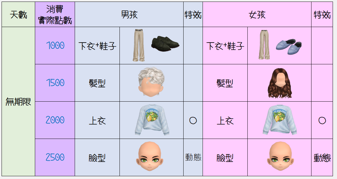 於活動發獎日可以獲得對應性別-檸萌青春 甜蜜日常 髮型、下衣、鞋子(無期限) (男生)